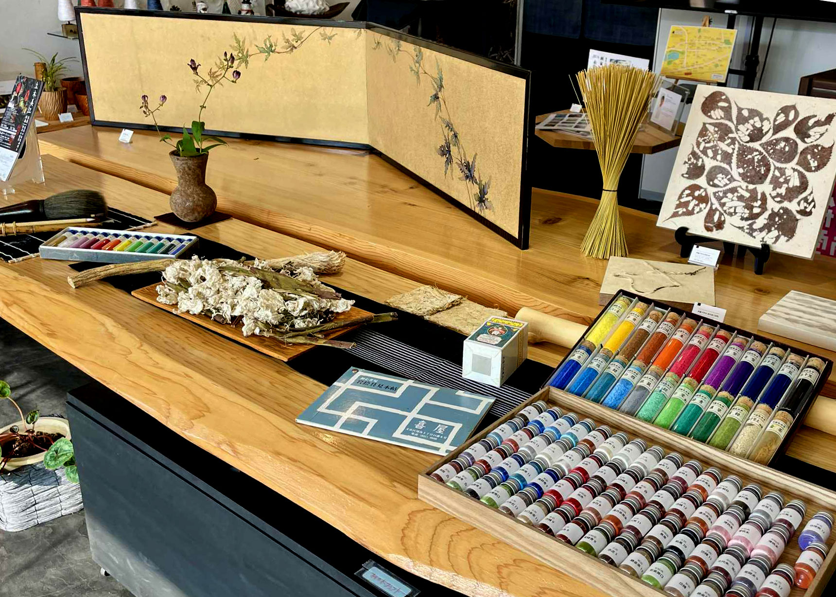 六本松一丁目の月白喫茶室・書店(展示室)にて日本画材の展示を行いました。