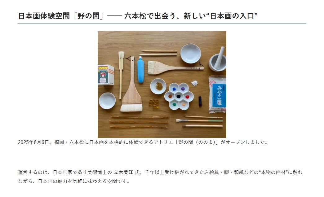 cotoco 株式会社が主催する「ファミ旅」企画で長崎から福岡・六本松「野の間」への日本画体験ツアープログラムの実施協力などの連携事業もご相談承ります。